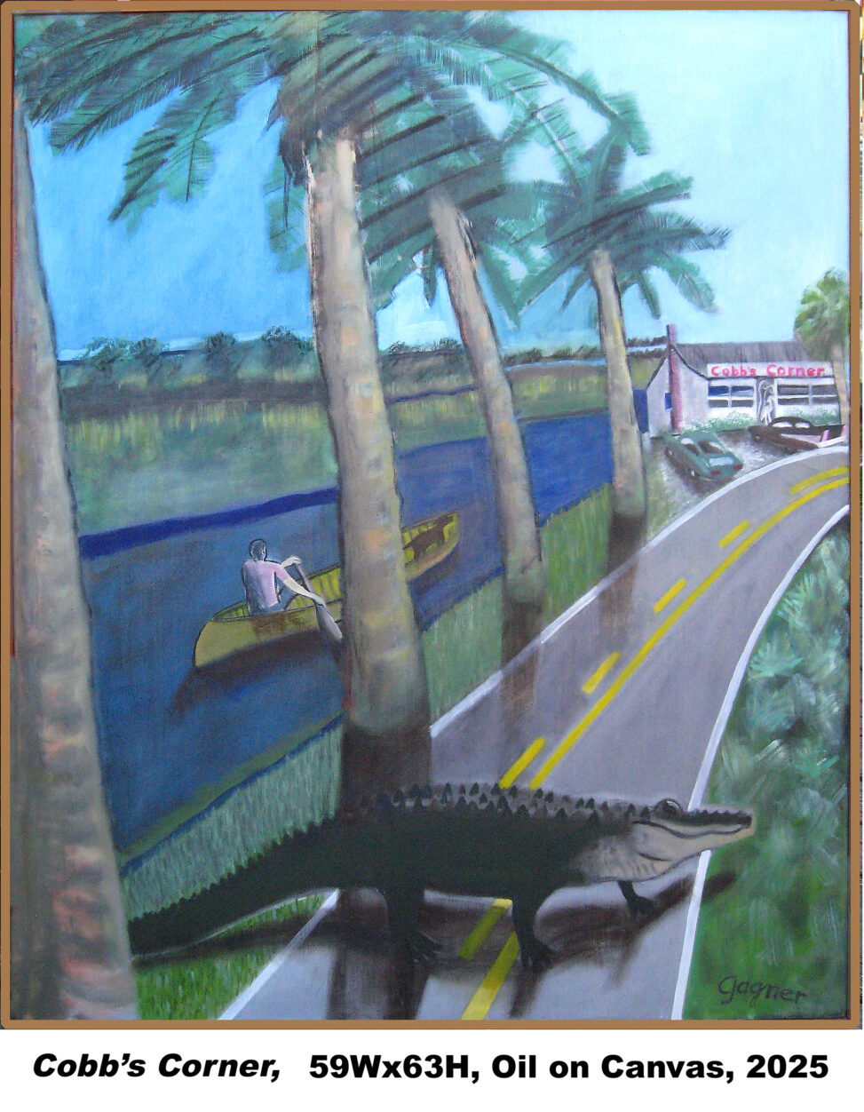 In the late 60s, there used to be a restaurant located in the swampy region of the North Peninsula, just west of High Bridge on High Bridge Road, called Cobb’s Corner. When approaching the restaurant from the east, the road features a number of beautiful palm trees, evenly spaced, slightly curving over the banks next the brackish water, as if to defy gravity. It was, and still is picture perfect.