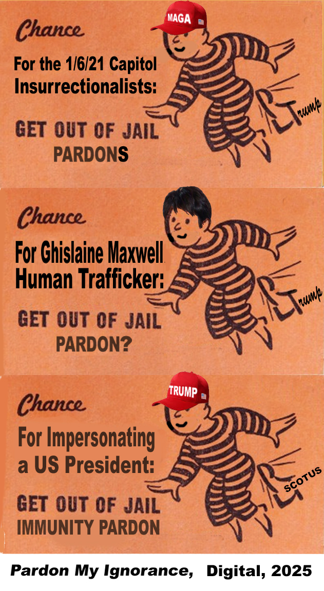 I guess it’s not enough that treasonous Trump pardoned almost all the 1/6/21 insurrectionists for their evil deeds against our country’s government. Now he’s apparently considering (maybe) giving a pardon for convicted, human trafficker, Ghislaine Maxwell.