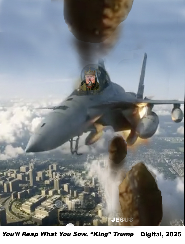 Trump recently had an AI video created featuring him as an F-18 fighter pilot, dumping excrement down upon non-violent “No Kings” protesters in NY City.